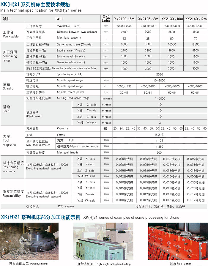 XK(H)21系列数控动梁定柱龙门镗铣床、加工中心