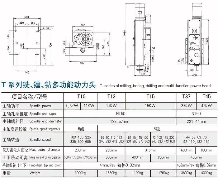 T series milling, boring, drilling multi-functional power head